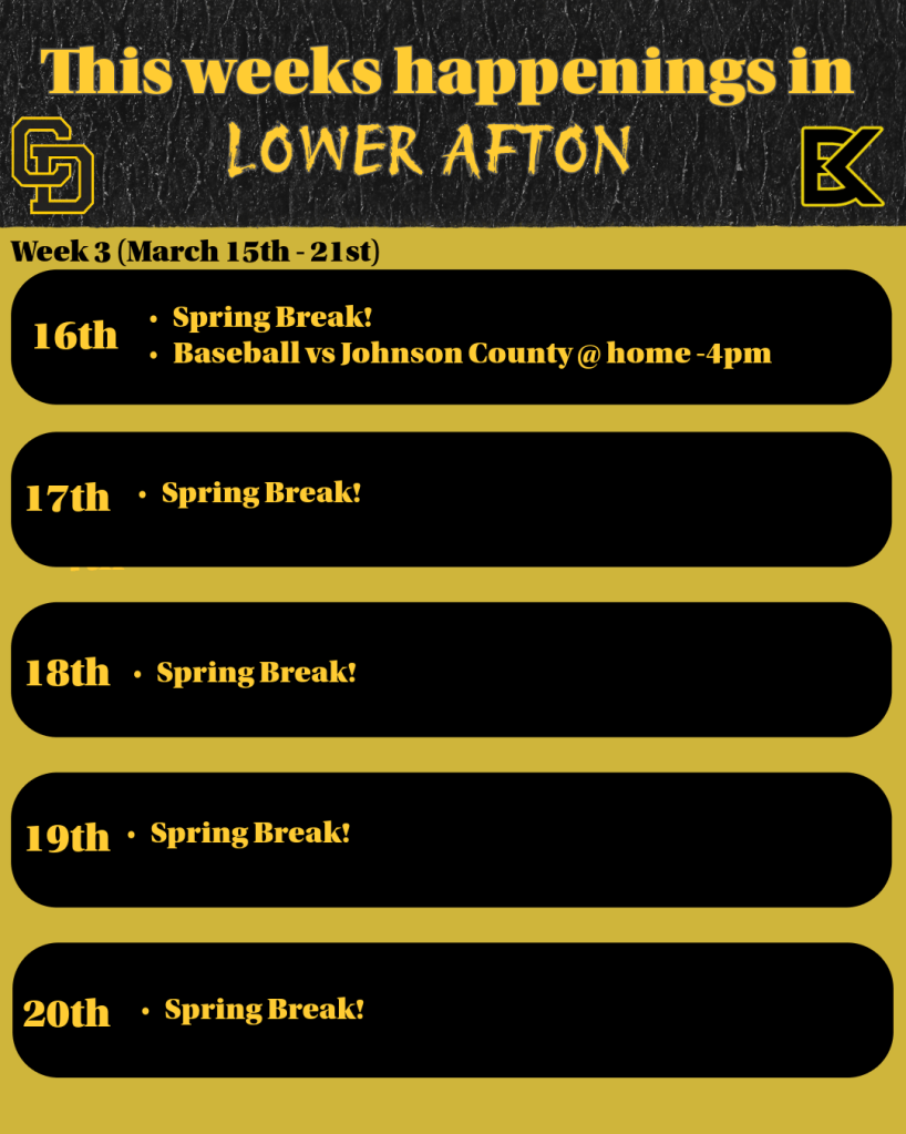 - Spring break is the week of March 15th-21st!