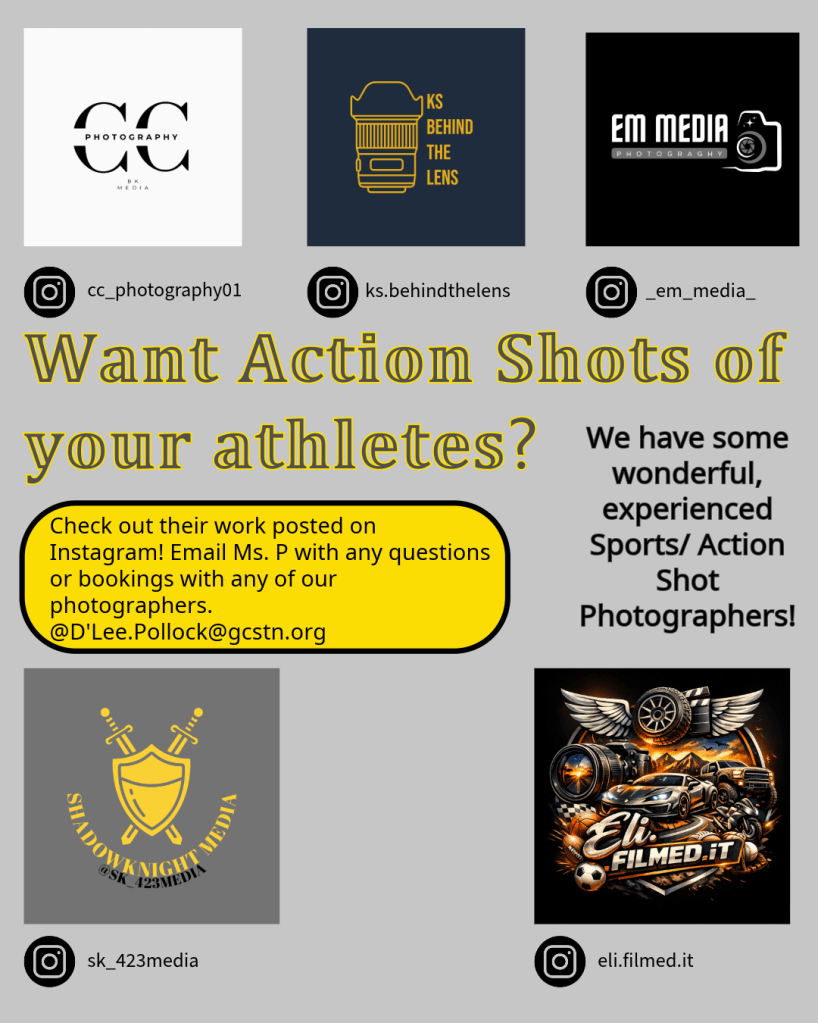 Students need to leave class 15 minutes before their scheduled picture. For more information, please see Ms. P or Khloe Henderson!